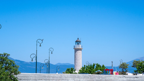 Wir fanden einen schattigen Parkplatz direkt am Hafen, mit Blick auf den Leuchtturm. Ein kurzer Kaffee, ein bisschen durchatmen – und dann riefen wir unsere griechischen Freunde an. Alexander und Georges liessen nicht lange auf sich warten. Gemeinsam fuhren wir durch die Stadt, Alexander zeigte uns Ecken, die wir allein wohl nie entdeckt hätten. Er hatte hier studiert – und man merkte, dass Patras für ihn mehr war als nur eine Stadt. Sie war Teil seiner Geschichte.